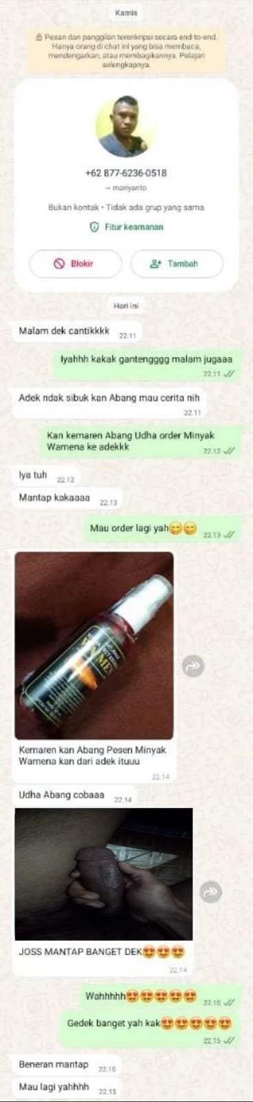 -OLESKAN 1ML WAMENA OIL KE BATANG KONTOL DAN URUT 10-15 MENIT SAMPAI TERLIHAT URAT DAN MENGERAS.